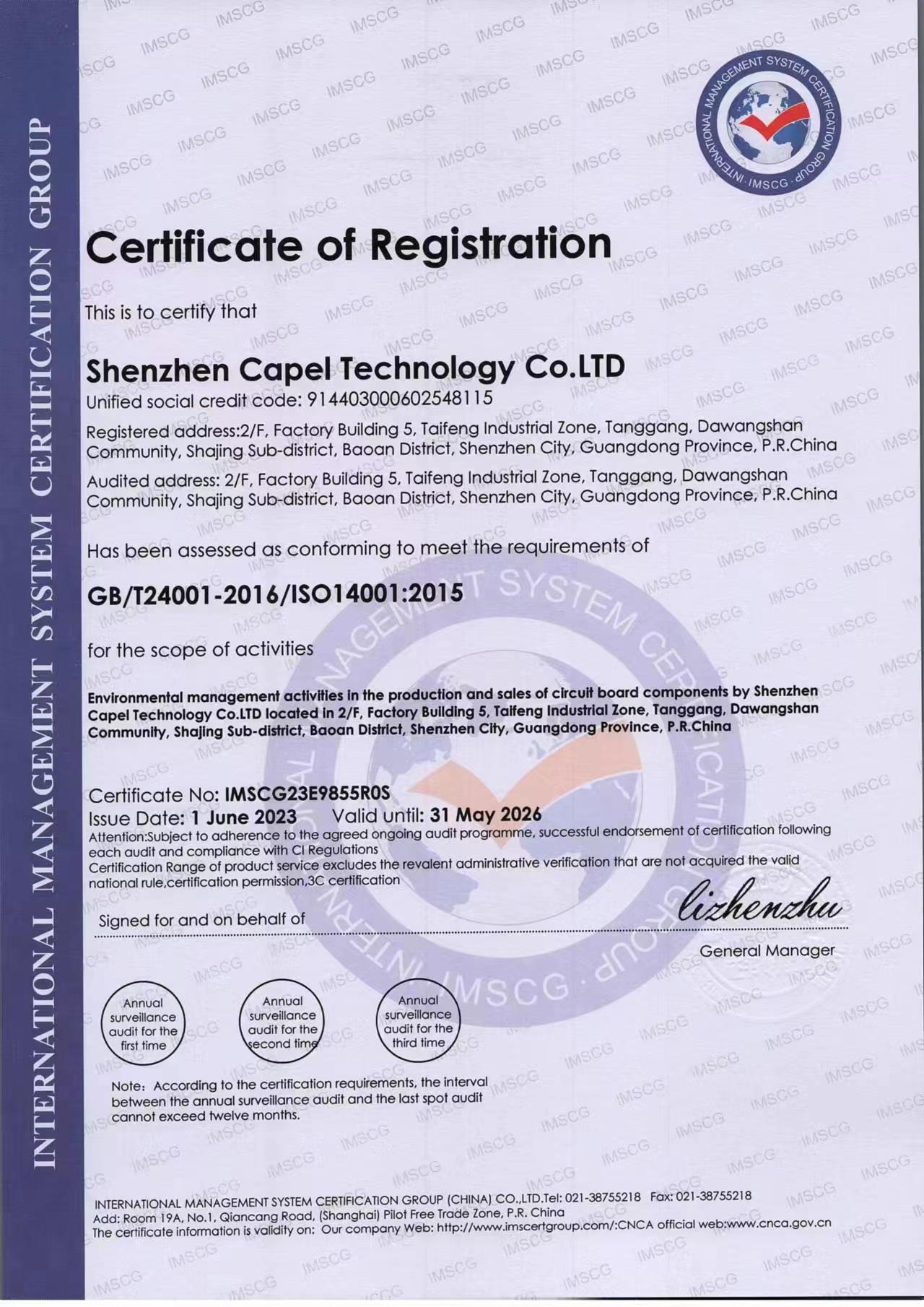 ISO 14001證書